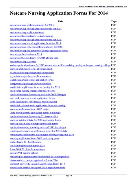Read netcare nursing 2014 fees Doc
